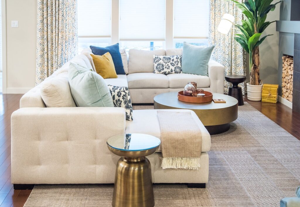 When purchasing new furniture stick to neutral tones. Neutral colored pieces will stand the test of time & easily integrate with most decorative schemes. If your adamant & not willing to steer clear of color go for something navy or a dusky shade of green. Dabble in delight through a medley of designs by adding excitement with pillows & throws. Meanwhile in a few years when you tire of the look, the cost of replacing those few extra cushions are less likely to make you cringe or cry compared to the purchase of a new couch.